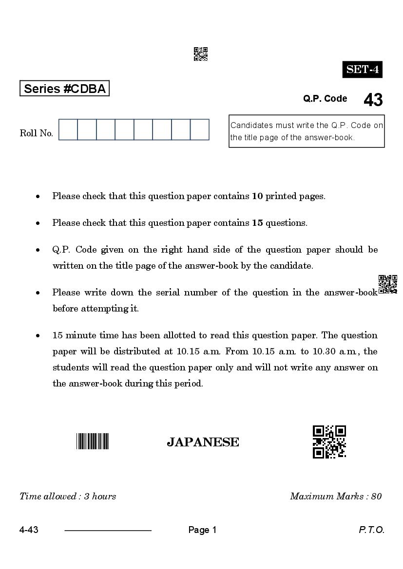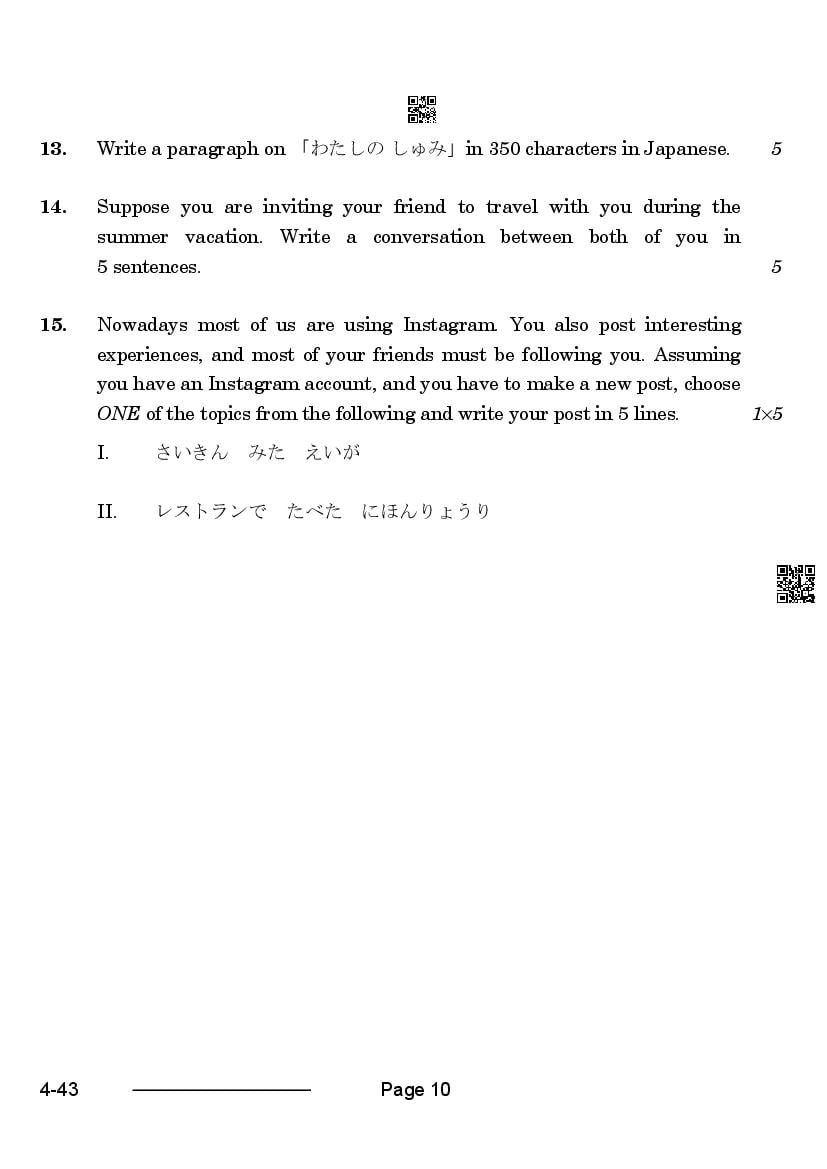 CBSE Class 10 Question Paper 2024 JapaneseView Download