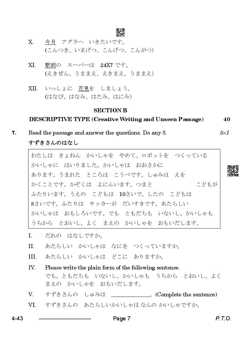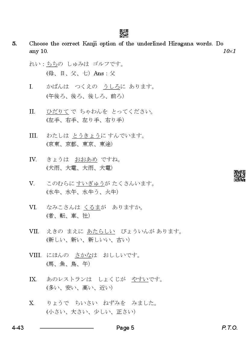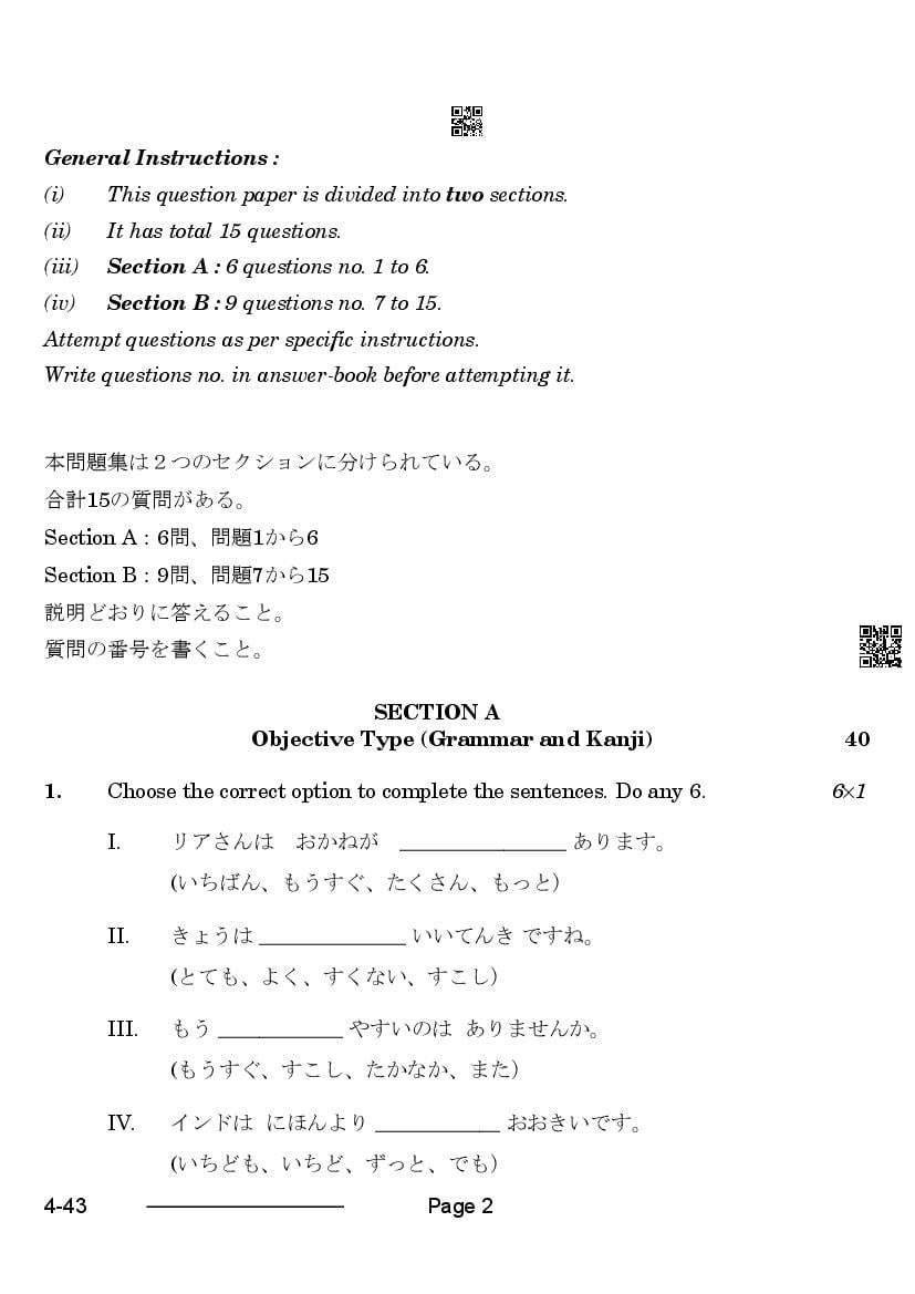 CBSE Class 10 Japanese Question Paper 2024 PDF